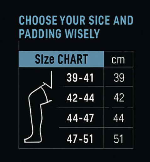 Knæbeskytterne sidder sikkert på plads takket være justerbare elastiske stropper og et skridsikkert silikonebånd, der forhindrer dem i at glide - selv under hurtige bevægelser eller lange kampe.