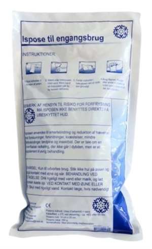 Denne ispose fra Henza er en engangs ispose, som man ryster og maser sammen før brug.