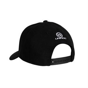 Kasketten fra Unihoc fås i sort som vist på billedet med justerbar lukning i nakken og med et stort logo og i nakken.