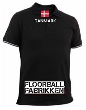 Denne polo t-shirt trykkes specielt til landsholdet med Floorball Danmark logo foran på venstre bryst og med dansk flag og "DANMARK" trykt i nakken samt Floorballfabrikken logo nederst på ryggen.