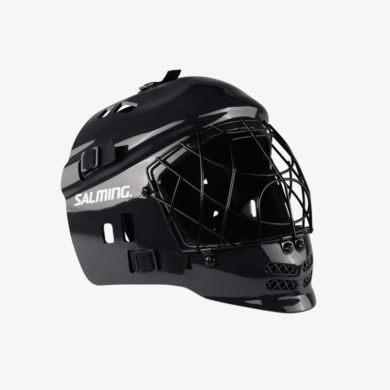 Super lækker junior floorballhjelm / hockeyhjelm til målmanden. Denne målmands hjelm er behagelig at have på med god ventilation, cat-eye visir og justerbar stropper og hageskål