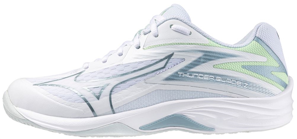 Str. 37-41 Indendørs floorball sko - Mizuno Thunder Blade Z - Hvid/sølv/grøn
