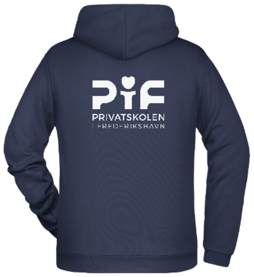 Super flot og unik hættetrøje med PiF - Privatskolen i Frederikshavn logo.