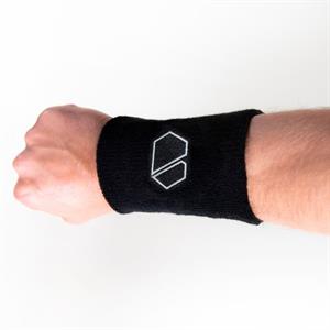 1 stk. svedbånd til håndleddet i klassisk stilrent design i sort med hvidt logo fra Blindsave.